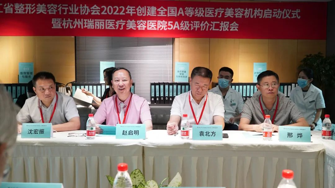 受國(guó)家衛(wèi)健委委託,根據(jù)中國(guó)整形美容協(xié)會(huì)在全國(guó)範(fàn)圍部署醫(yī)療美容機(jī)構(gòu)評(píng)價(jià)工作的計(jì)畫要求,2022年浙江省醫(yī)療美容機(jī)構(gòu)A等級(jí)評(píng)價(jià)工作在全省範(fàn)圍開展。8月27日下午,浙江省醫(yī)療美容機(jī)構(gòu)A等級(jí)評(píng)價(jià)工作省級(jí)初評(píng)啟動(dòng)會(huì)在杭州瑞麗醫(yī)療美容醫(yī)院舉辦。浙江省整形美容行業(yè)協(xié)會(huì)會(huì)長(zhǎng)趙啟明,浙江省衛(wèi)健委綜合監(jiān)督局四級(jí)調(diào)研員沈宏振、杭州市衛(wèi)健委醫(yī)政醫(yī)管處處長(zhǎng)袁北方、杭州市衛(wèi)健綜合行政執(zhí)法隊(duì)醫(yī)療科科長(zhǎng)邢燁;浙江省醫(yī)療美容機(jī)構(gòu)評(píng)價(jià)專家組:杭州市上城區(qū)衛(wèi)健局副局長(zhǎng)方秋萍、浙江大學(xué)醫(yī)學(xué)院附屬邵逸夫醫(yī)院整形外科李華主任、溫州醫(yī)科大學(xué)附屬第一醫(yī)院整形外科鄭君達(dá)主任、杭州市感染質(zhì)控中心專家楊梅;浙江省整形美容行業(yè)協(xié)會(huì)高級(jí)顧問、全國(guó)醫(yī)美資深專家馬奇教授,浙江省整形美容行業(yè)協(xié)會(huì)秘書長(zhǎng)李自明、副秘書長(zhǎng)劉英;瑞麗醫(yī)美集團(tuán)副總裁戎浩天、瑞麗醫(yī)美集團(tuán)總院長(zhǎng)宋建良、杭州瑞麗醫(yī)療美容醫(yī)院總經(jīng)理徐建清、杭州瑞麗醫(yī)療美容醫(yī)院醫(yī)療院長(zhǎng)閔密克等參會(huì)。